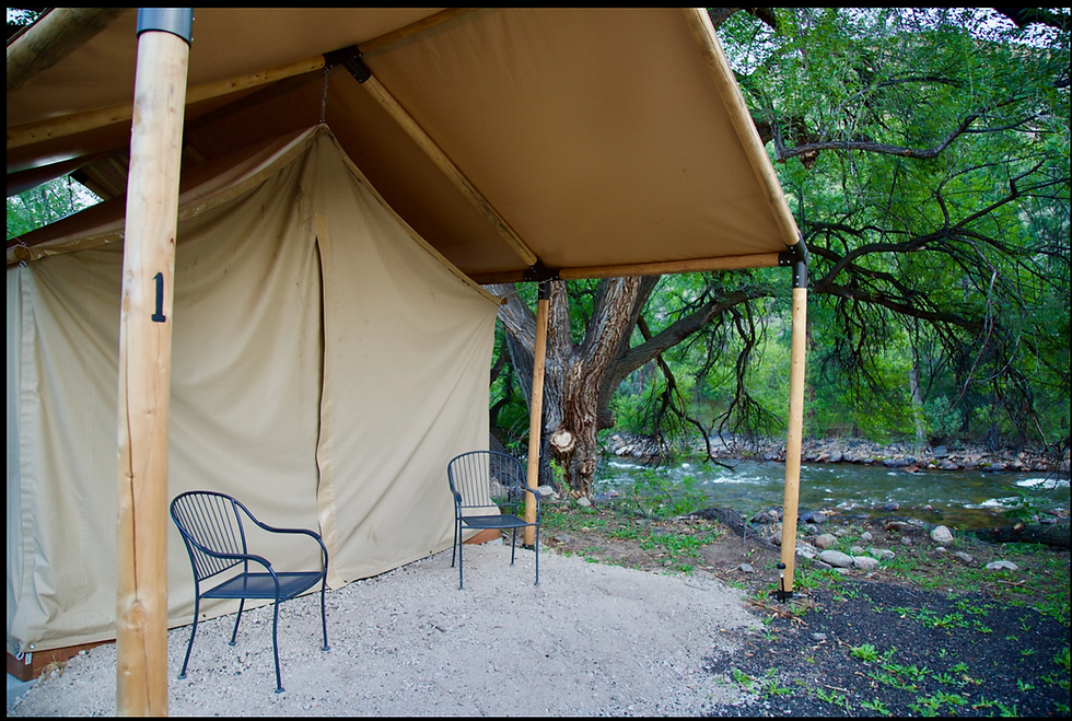 Settle into a private 12'x14' glamping tent nestled right along the banks of the Poudre River—your own riverside sanctuary. This thoughtfully furnished tent offers a grounded and cozy escape, complete with a plush queen-size bed and soft linens for deep rest after days spent in nature and practice.